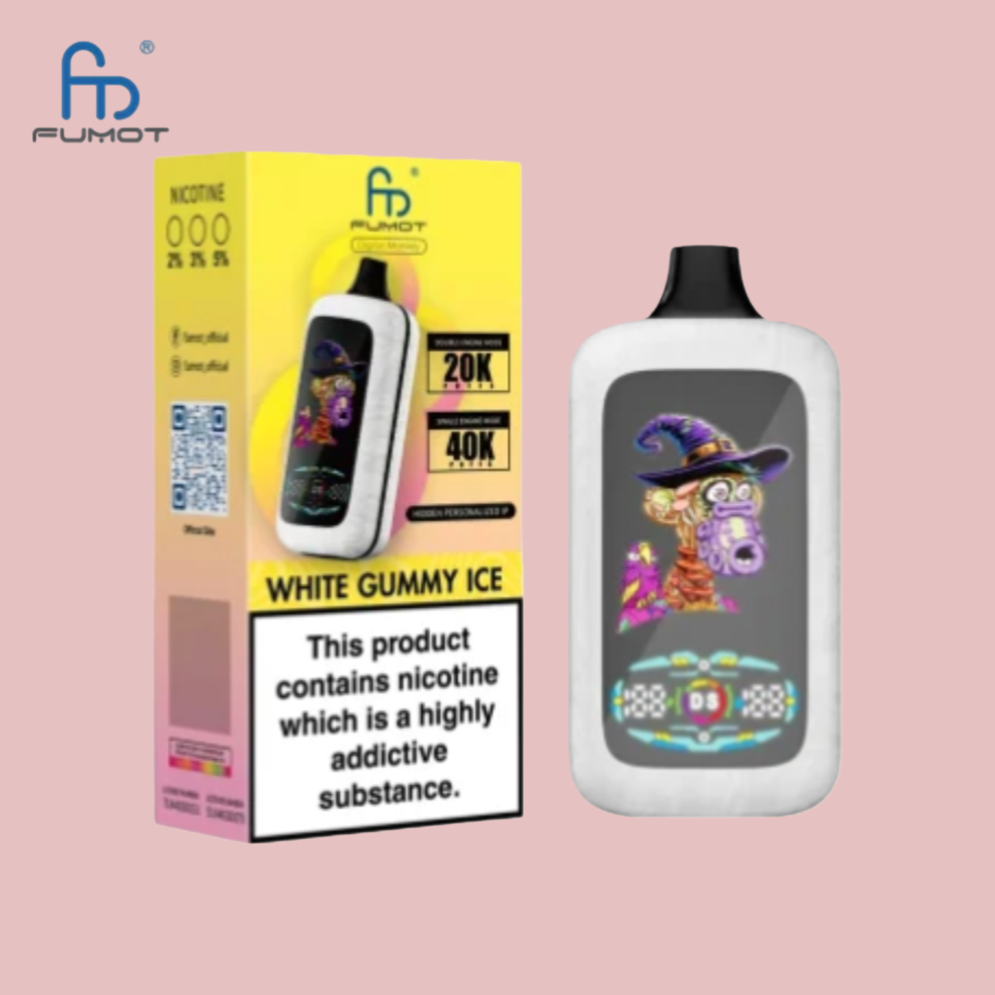 Der RandM Digital Monkey 20K/40K White Gummy Ice vereint das süße Aroma klassischer weißer Fruchtgummis mit einem leicht kühlen, eisigen Gefühl und sorgt so für ein reichhaltiges, sanftes und erfrischendes Dampferlebnis.